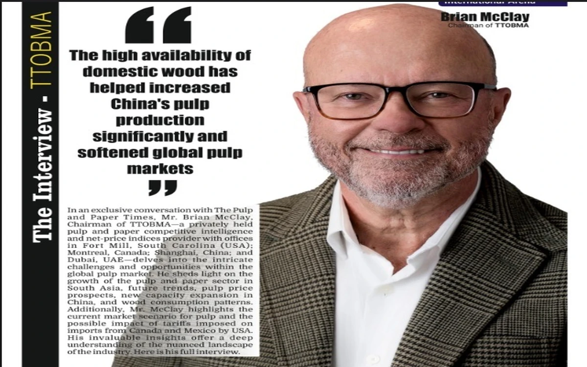 In an exclusive conversation with The Pulp and Paper Times, Mr. Brian McClay, Chairman of TTOBMA—a privately held pulp and paper competitive intelligence and net-price indices provider with offices in Fort Mill, South Carolina (USA); Montreal, Canada; Shanghai, China; and Dubai, UAE—delves into the intricate challenges and opportunities within the global pulp market. He sheds light on the growth of the pulp and paper sector in South Asia, future trends, pulp price prospects, new capacity expansion in China, and wood consumption patterns. Additionally, Mr. McClay highlights the current market scenario for pulp and the possible impact of tariffs imposed on imports from Canada and Mexico by USA. His invaluable insights offer a deep understanding of the nuanced landscape of the industry. Here is his full interview.