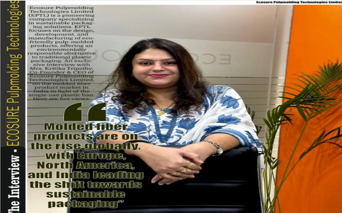 Ecosure Pulpmolding Technologies Limited (EPTL) is a pioneering company specializing in sustainable packaging solutions. EPTL focuses on the design, development, and manufacturing of eco-friendly pulp-molded products, offering an environmentally responsible alternative to traditional plastic packaging. An exclusive interview with Mrs. Kritika Tripathy, Co-Founder & CEO of Ecosure Pulpmolding Technologies Limited, on the molded fiber product market in India in light of the single-use plastic ban. Here are her views: