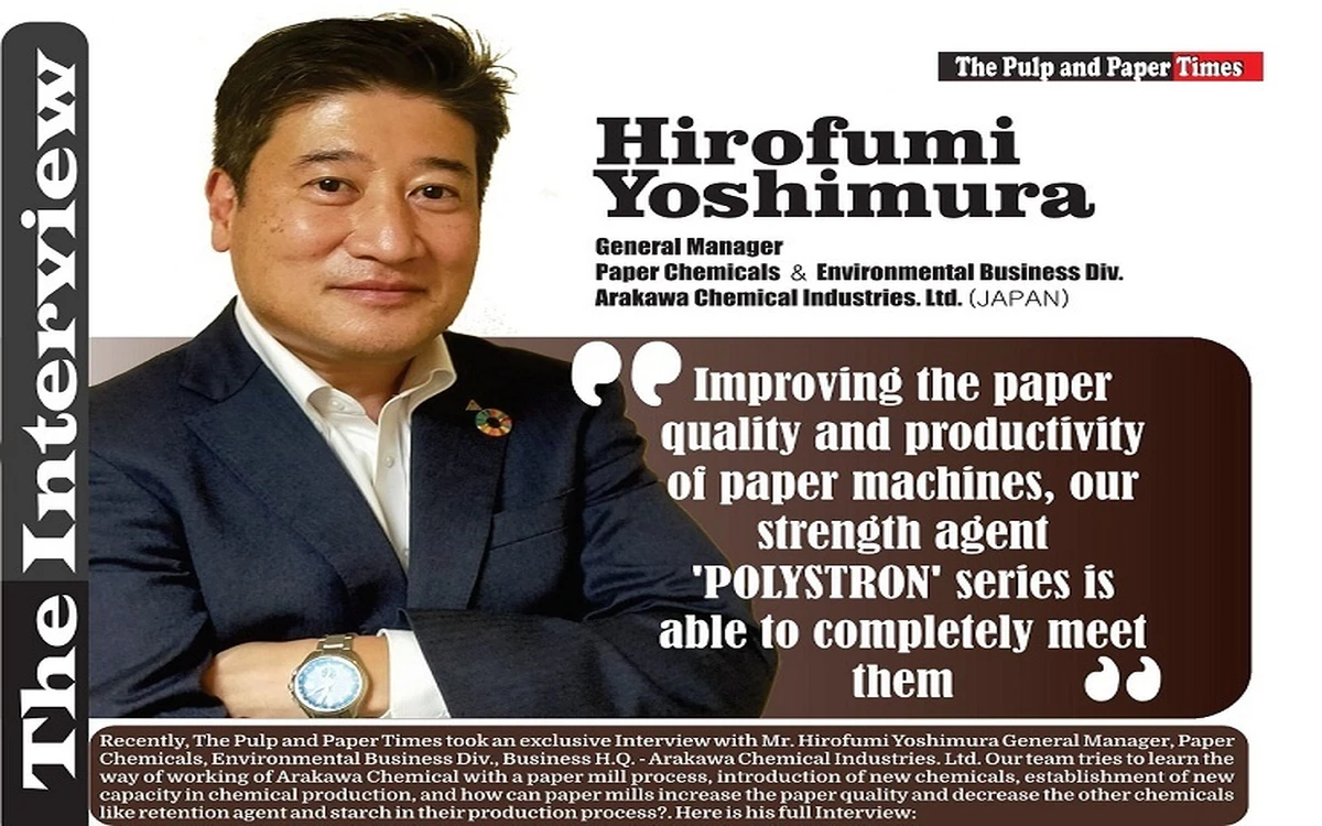 Recently, The Pulp and Paper Times took an exclusive Interview with Mr. Hirofumi Yoshimura General Manager, Paper Chemicals & Environmental Business Div., Business H.Q. - Arakawa Chemical Industries. Ltd. Our team tries to learn the way of working Arakawa Chemical with a paper mill process, introduction of new chemicals, establishment of new capacity in chemical production, and how can paper mills increase the paper quality and decrease the other chemicals like retention agent and starch in their production process?. Here is his full Interview: