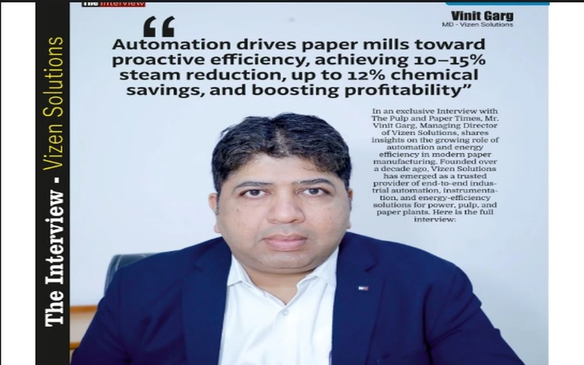 In an exclusive Interview with The Pulp and Paper Times, Mr. Vinit Garg, Managing Director of Vizen Solutions, shares insights on the growing role of automation and energy efficiency in modern paper manufacturing. Founded over a decade ago, Vizen Solutions has emerged as a trusted provider of end-to-end industrial automation, instrumentation, and energy-efficiency solutions for power, pulp, and paper plants. Here is the full interview: